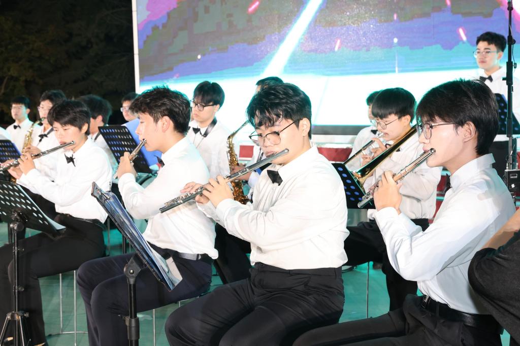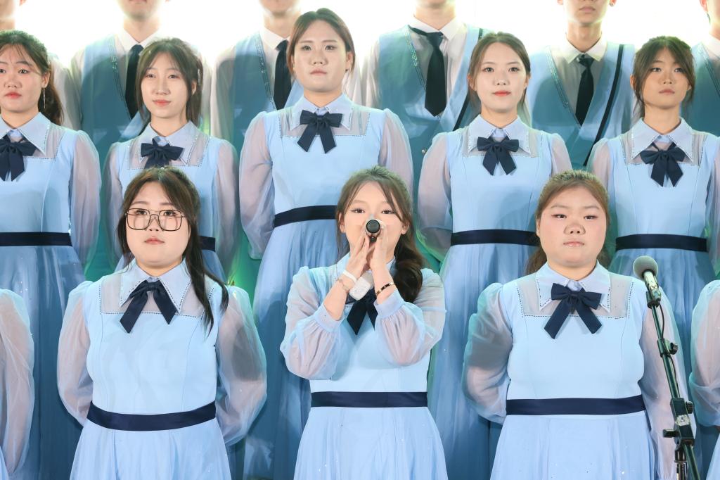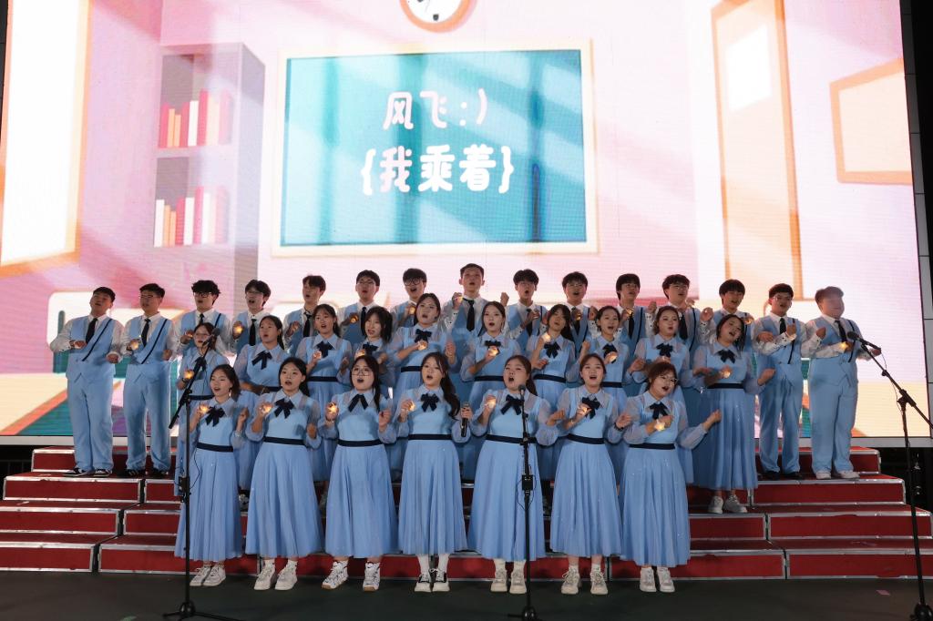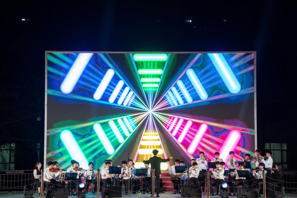 新入职博士教师代表与新生代表联袂带来诗朗诵《缘聚科大,青春同路》,以“相遇”与“同行”传递师生相聚黑科大的温情与憧憬。大学生合唱团献上《逆光》《我乘着风飞过来》两首合唱作品,清澈嘹亮的歌声传递出我校青年学生不畏困难、勇敢追梦的信念,整齐的和声与富有感染力的演绎,让现场观众感受到青春力量的蓬勃涌动。大学生军乐团带来乐器表演《五月天组曲》,熟悉的旋律、青春的气息,赢得台下阵阵掌声。青年学生代表和UP街舞团表演歌舞《我的未来不是梦》,将此篇章推向高潮,台下新生纷纷跟着节拍挥舞荧光棒,现场成为一片闪烁的星海。