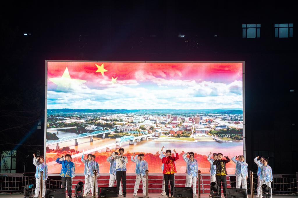 大学生凤凰鸟艺术团、建工学院团委共同表演歌舞《未来我来》,传递我校青年学生“把握当下、创造未来”的信念与决心。UP 街舞团再次登场,带来舞蹈《舞潮东方》,舞者们以刚柔并济的动作展现传统文化与现代舞蹈的碰撞。大学生音乐爱好者协会的同学们演唱歌曲《我爱你中国》,以深情的演唱表达对祖国的祝福,熟悉的旋律引发全场大合唱,爱国情怀在这一刻凝聚成最动人的力量。晚会在大学生合唱团表演的合唱《敬礼敬礼》中落下帷幕,歌声中满含对新生的祝福、对祖国的致敬。当最后一个音符落下,全场掌声雷动,校领导走上舞台与演职人员合影留念,晚会在温馨热烈的氛围中圆满结束。