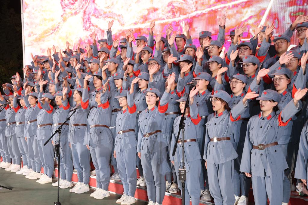计算机学院团委选送的合唱《四渡赤水出奇兵》,铿锵有力的歌声中满含对革命先辈的崇敬之情,让在场师生在歌声中重温红色记忆。书画协会同学们现场展示了历时一个月创作的剪纸作品,重现了《爬雪山过草地》《井冈山会师》《遵义会议》《狼牙山五壮士》等15个战争或历史场景,以巧思的设计、细腻的工艺让现场师生在指尖的艺术里,再次触摸那段热血沸腾的岁月。飞跃之声广播电台、管理学院团委联合呈现的音诗画《弦歌不辍、薪火相传》,讲述黑科大的发展历程与办学初心,引领新生深刻了解学校的历史底蕴,勇担使命、砥砺前行。电气学院团委选送的舞蹈《红旗颂》,用优美的舞姿演绎对祖国的热爱,舒展的动作、饱满的情感,将现场气氛再次推向高潮。理学院刘星彤老师倾情演绎歌曲《祖国不会忘记》,歌声中满含报效祖国的豪迈与坚定,台下师生自发跟着哼唱,爱国之情在歌声中静静流淌。