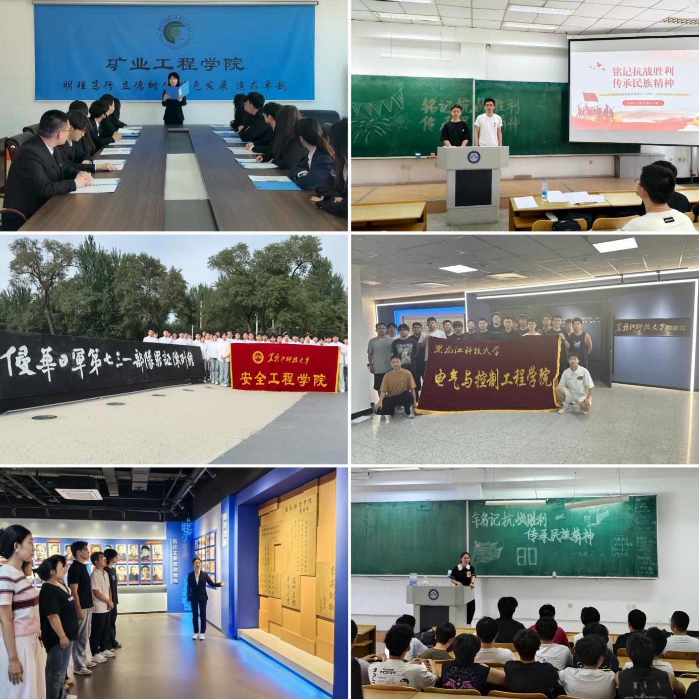 上好端正思想的“信仰课”。学工部(处)发布《2025-2026学年第一学期学生首周教育活动指导方案》《关于开展“铭记抗战胜利 传承民族精神”主题班会活动的通知》等文件,统筹推进新学期学生首周教育、主题班会活动有序开展。组织学生深入学习贯彻习近平新时代中国特色社会主义思想、全国教育大会及党的二十届三中全会精神,结合纪念中国人民抗日战争暨世界反法西斯战争胜利80周年重要契机,通过开展主题班会、主题演讲、专题辩论赛、参观红色基地与校史馆等教育活动,引导学生树立牢固的理想信念,厚植爱党爱国情怀,激励学生为强国建设、民族复兴贡献青春力量,在新时代新征程上,以实际行动推动中国式现代化不断向前发展。矿业学院通过集中领学、诵读经典的方式,深化青年学生思想引领,号召广大青年主动扛起时代重任、践行青春使命;安全学院组织学生赴“侵华日军第七三一部队罪证陈列馆”开展实地学习,引导学生在重温历史中涵养家国情怀,激发投身强国建设的内生动力;电气学院、人文学院将课堂搬进校史馆,引导学生从校史变迁中感悟初心使命、汲取奋进力量;经济学院举办“思政启航,筑梦青春”主题演讲比赛,引导学生在以赛促学中深化思想认同,坚定青春筑梦、矢志报国的信念。