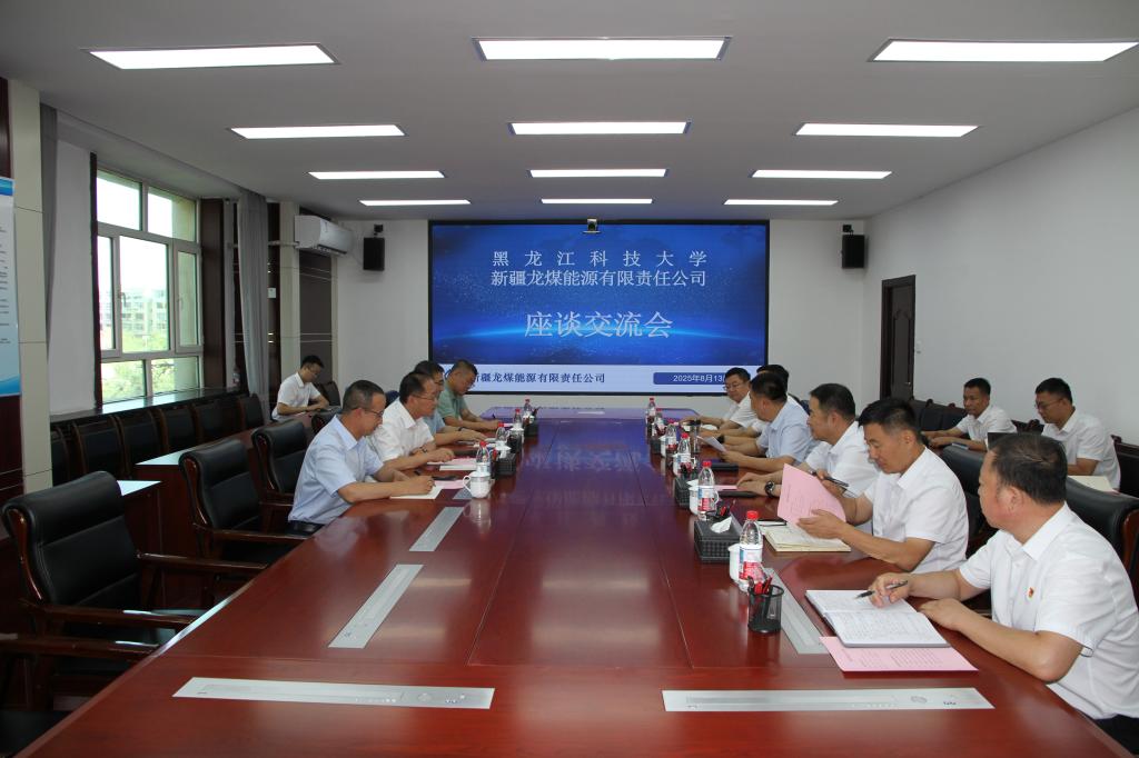 8月13日,调研组到新疆龙煤能源有限责任公司调研座谈。新疆龙煤公司党委书记、董事长李强向调研组介绍了公司创业发展情况,就矿山企业对各类人才需求等方面提出建议;张国华介绍了学校发展历程、办学特色、博士特需人才培育项目和产业融合项目创建等情况。双方一致认为,要围绕矿山转型发展、智能化建设、产业布局和在新疆开展合作办学等方面加强沟通交流,共同谱写校企合作新篇章。