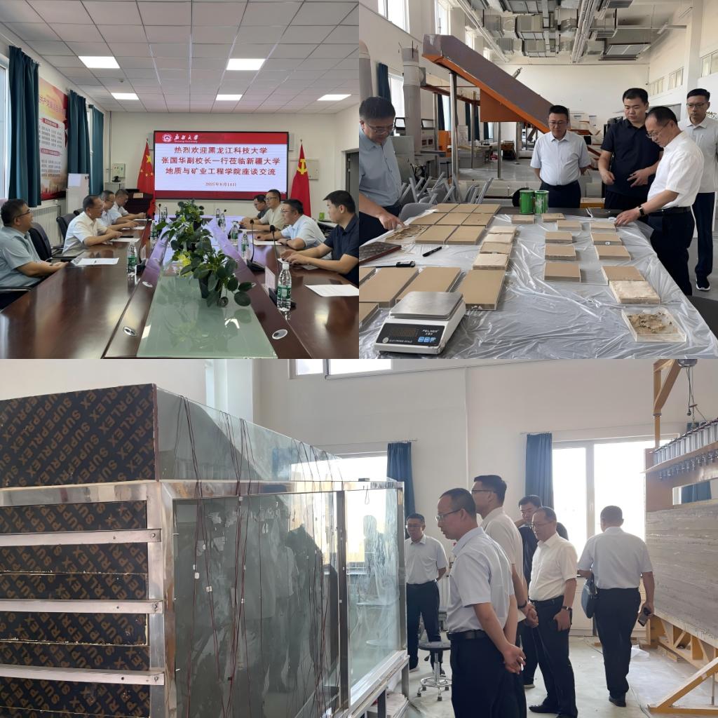 8月14日,调研组赴新疆大学参观调研。新疆大学地质与矿业工程学院院长张紫昭介绍了学院的历史沿革、人才培养、学科建设布局及近年来学院在科学研究、高层次人才引进等方面取得的进展;张国华介绍了学校发展历程及近期发展情况,并表示新疆地域辽阔、矿产资源富集,是国家未来重要的煤炭战略基地,期待两校以此次交流为契机,推动双方在煤炭安全高效开采技术、煤炭资源勘探评价等方面深度互补、合作共赢。会前,调研组一行参观了新疆大学矿山压力与岩层控制、三维固液耦合综合物理模拟、高温高压伺服控制岩体三轴等矿业实验室。