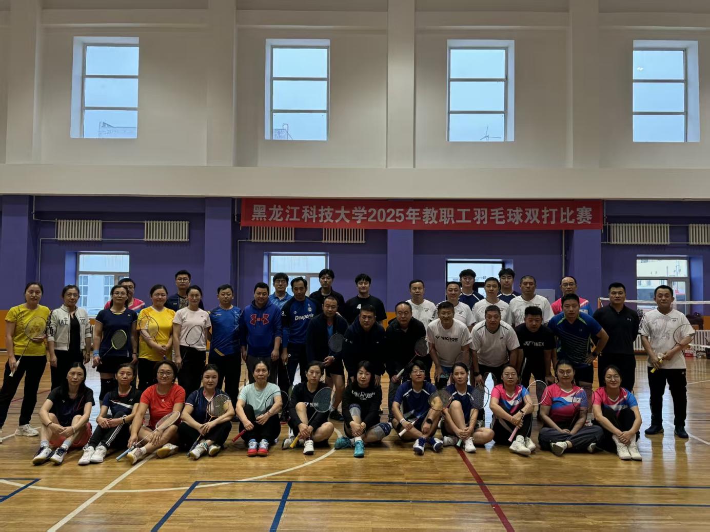 为深入贯彻落实中国工会十八大精神,推动我校羽毛球运动发展,增强教职工健康意识和健康技能,展示教职工羽毛球运动风采,由校工会、体育部主办,校教职工羽毛球协会承办的2025年教职工羽毛球双打比赛于11月8日成功举办。本次比赛设男子双打、女子双打、混合双打三个项目,共吸引我校50余名教职工参赛。