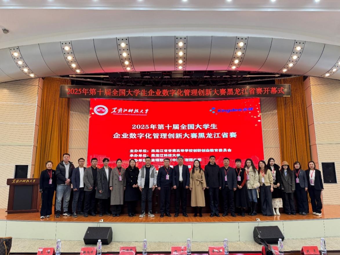 11月8日,由黑龙江省普通高等学校创新创业教育指导委员会主办,黑龙江科技大学承办,金蝶软件(中国)有限公司协办的2025年第十届全国大学生企业数字化管理创新大赛黑龙江省赛在我校顺利举行。学校副校长、党委常委谭旭红,金蝶软件(中国)有限公司黑龙江省公司副总经理孙振懿出席开幕式并致辞,学校双创学院院长谭平、管理学院院长洪亮和来自东北农业大学、东北石油大学、哈尔滨理工大学等省内18所院校的200余名参赛师生参加了开幕式。开幕式由管理学院副院长高太光主持。