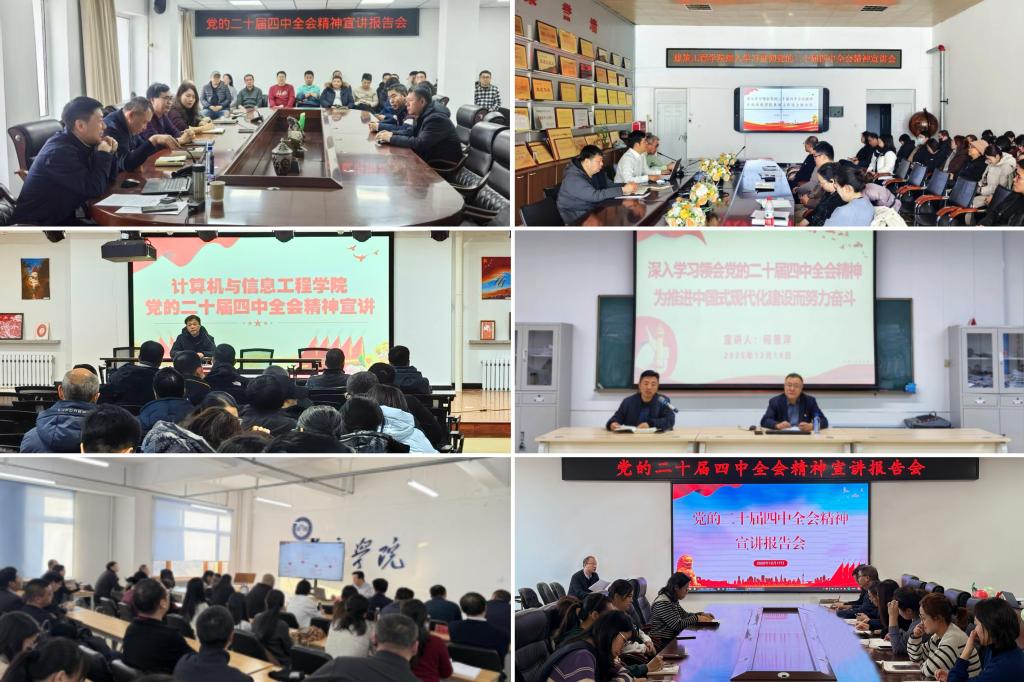 为深入学习、宣传贯彻党的二十届四中全会精神,切实将全校师生的思想与行动统一到党中央的决策部署上来,近期,学校宣讲团成员围绕党的二十届四中全会精神和《习近平谈治国理政》第五卷内容以及省委十三届八次全会精神,紧密结合学校实际情况,在全校26个基层单位党组织展开了集中理论宣讲活动,有力推动党的二十届四中全会精神往深里走、往实里走。