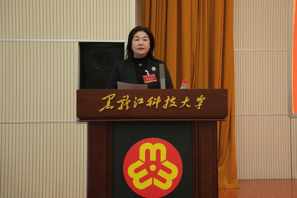 王霞在讲话中对大会召开表示热烈祝贺,向全校女教职工、女大学生致以诚挚问候。她指出,黑龙江科技大学的办学历程与国家发展、龙江振兴紧密相连,广大女性师生在各领域勇挑重担,生动诠释了“巾帼不让须眉”的时代担当。她强调,学校妇联要坚持党的领导,用习近平新时代中国特色社会主义思想凝心铸魂,引导女性师生坚定拥护“两个确立”,坚决做到“两个维护”,将个人理想融入国家发展大局;要聚焦引领服务核心,精准对接女教职工职业发展、家庭平衡等关切,以及女大学生学业提升、就业创业等诉求,搭建服务平台、畅通诉求渠道;要强化自身建设,探索高校妇联工作新模式,推动组织向院系、社团延伸,整合资源、创新载体,打造有凝聚力的“坚强阵地”和“温暖之家”,为全省高校妇联建设提供实践样板。