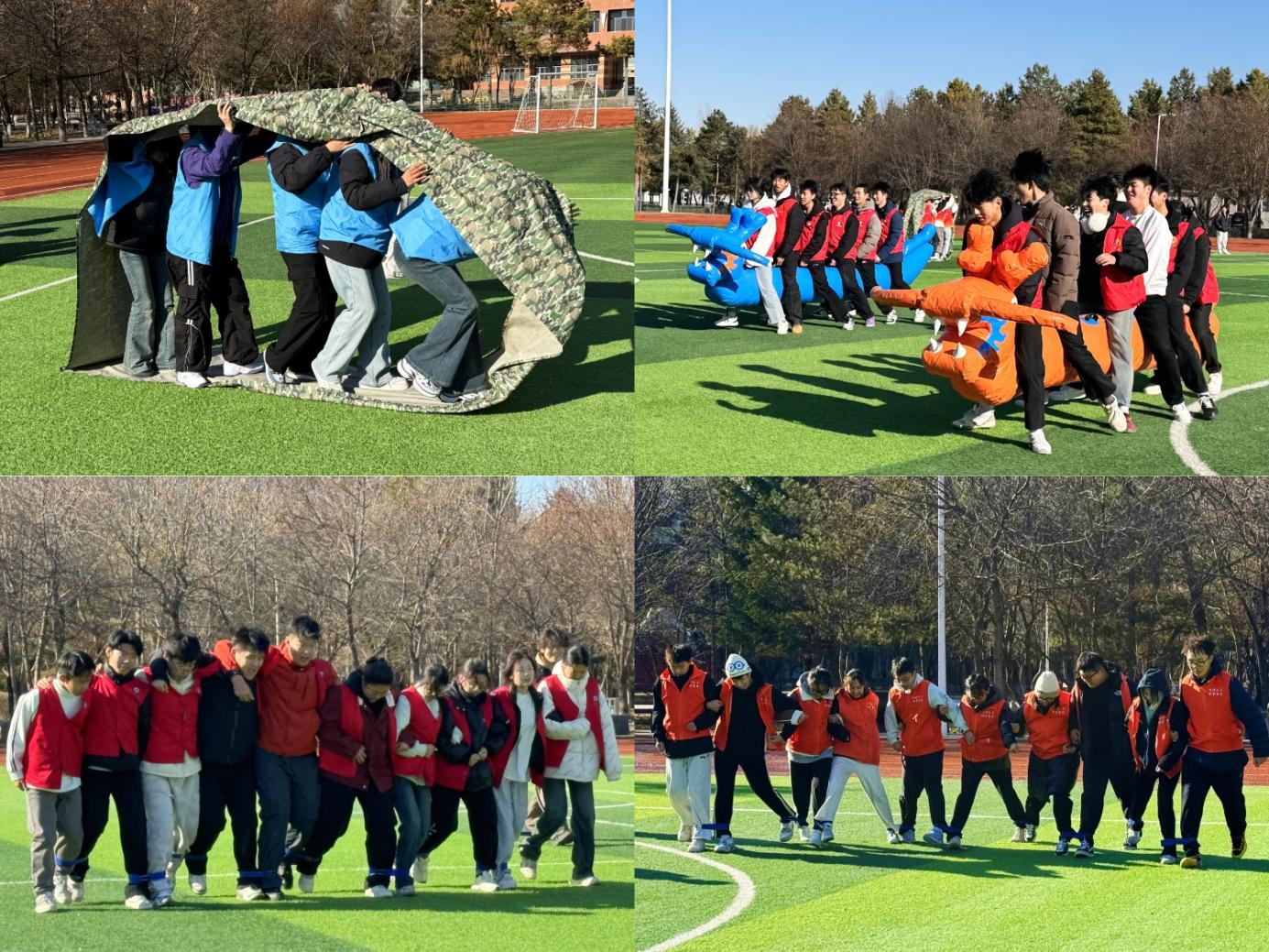 本次活动精心设置了“十人十一足”“车轮滚滚”“旱地龙舟”“障碍接力赛”“摇绳穿越”等多项富有趣味性与挑战性的团队项目。赛场上,来自全校15个学院的代表队斗志昂扬,在全情投入与协同拼搏中,有效提升了沟通协作与心理适应能力,展现了团结进取的青春风采。经过激烈角逐,最终计算机与信息工程学院荣获“最强战队”荣誉称号;材料科学与工程学院、电气与控制工程学院荣获“超群战队”荣誉称号;管理学院、马克思主义学院、安全工程学院荣获“荣耀战队”荣誉称号;矿业工程学院、建筑工程学院、机械工程学院、外国语学院、环境与化工学院、电子与信息工程学院、人文社会科学学院、理学院、经济学院荣获“优秀战队”荣誉称号。