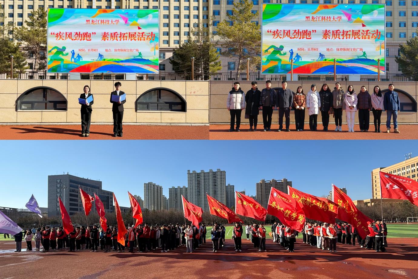 为深入学习贯彻党的二十大精神,落实《全面加强和改进新时代学生心理健康工作专项行动计划(2023—2025年)》的相关要求,着力提升大学生心理素养与团队协作能力。11月9日上午,由学生处心理健康教育中心主办、计算机与信息工程学院承办的黑龙江科技大学“疾风劲跑”户外素质拓展活动在体育休闲文化广场顺利举行。