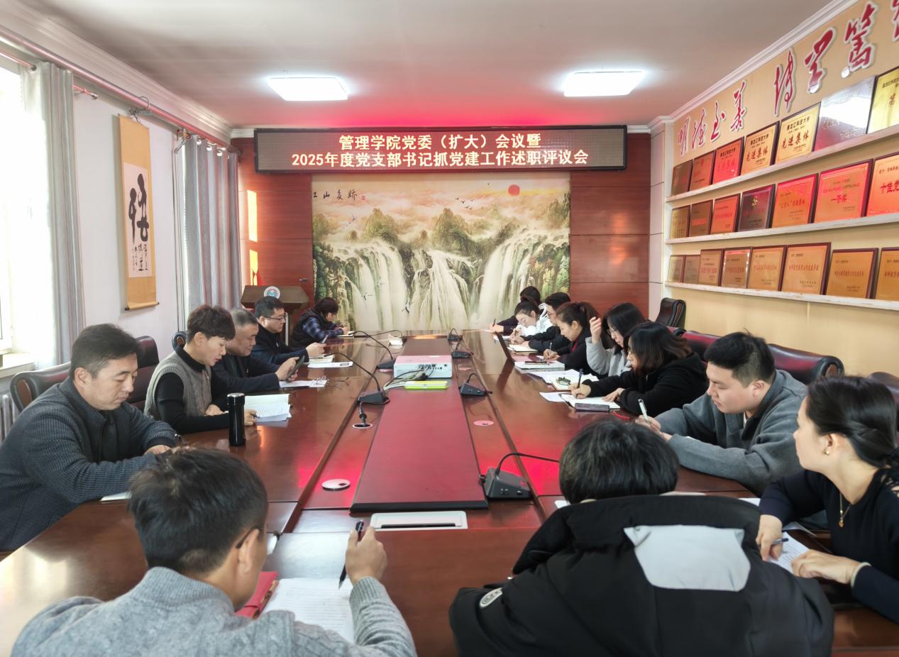 12月26日,管理学院在会议室召开党委(扩大)会议暨2025年度党支部书记述职评议会。学院领导班子成员、全体党支部书记参加会议,会议由学院党委副书记徐海英主持。